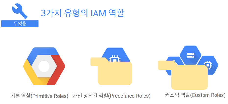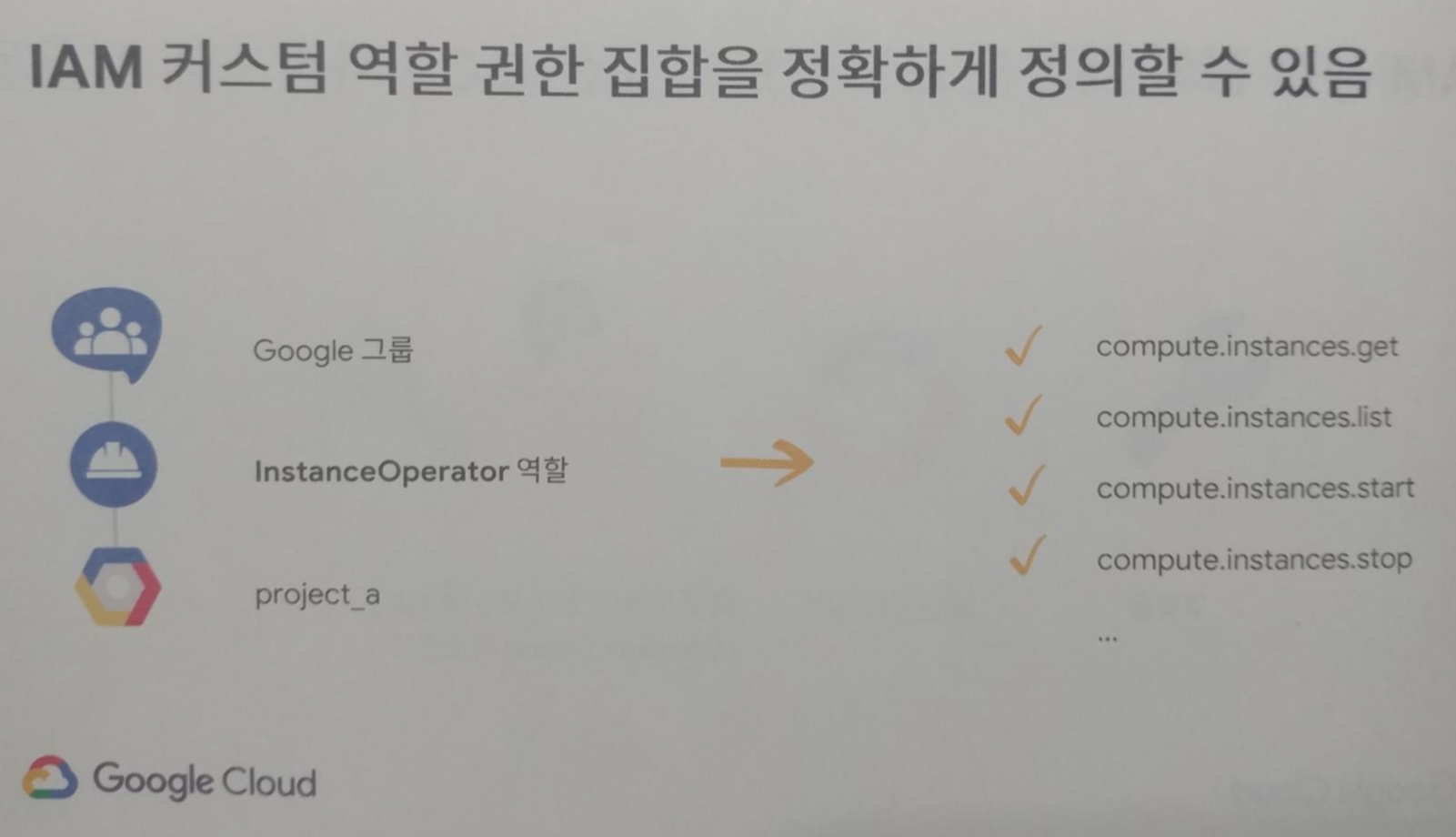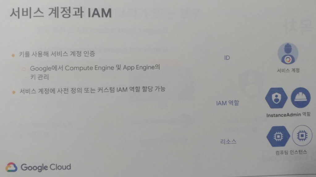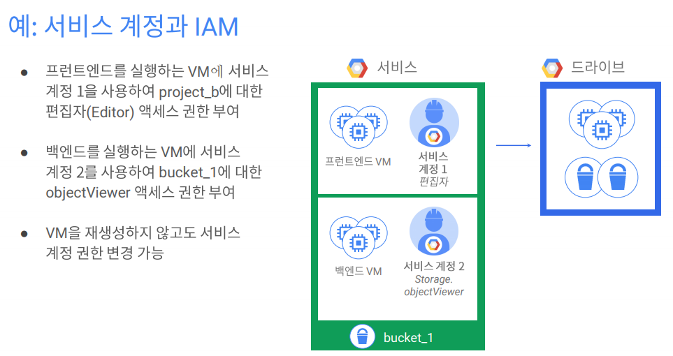 서비스 계정에 사전 정의 또는 커스텀 IAM 역할 할당 가능