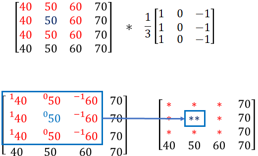 커널 행렬의 해당 요소와 이미지 매트릭스의 곱의 합으로 정의한다.