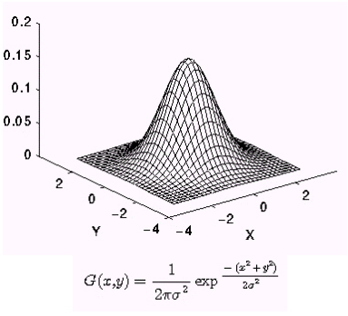 가우시안 분포를 따르는 커널을 만들고 합성곱을 수행할 때 중심 픽셀이 가증 큰 가중치를 가지고 인접 픽셀의 가중치는 줄어든다는 것을 의미한다.