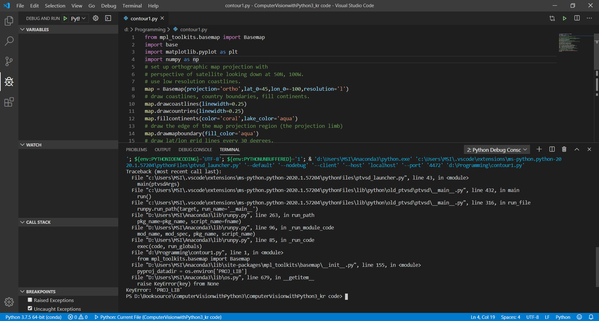 KeyError: 'PROJ_LIB' 라는 에러가 뜨네요...