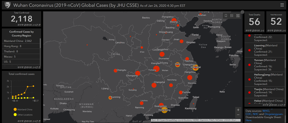 우한바이러스 발생 전세계 발생지역? 실시간 사이트