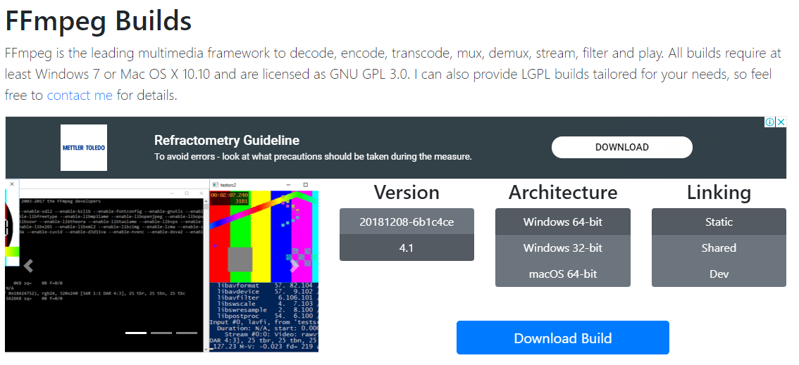 설치주소인 https://ffmpeg.zeranoe.com/builds/ 에 들어가시면
