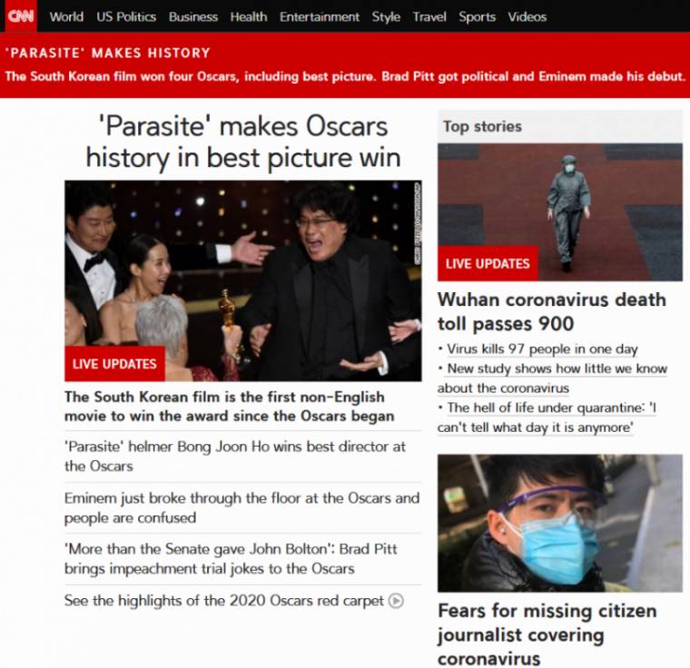 나란히 CNN 1면 대문을 장식한 한국과 중국