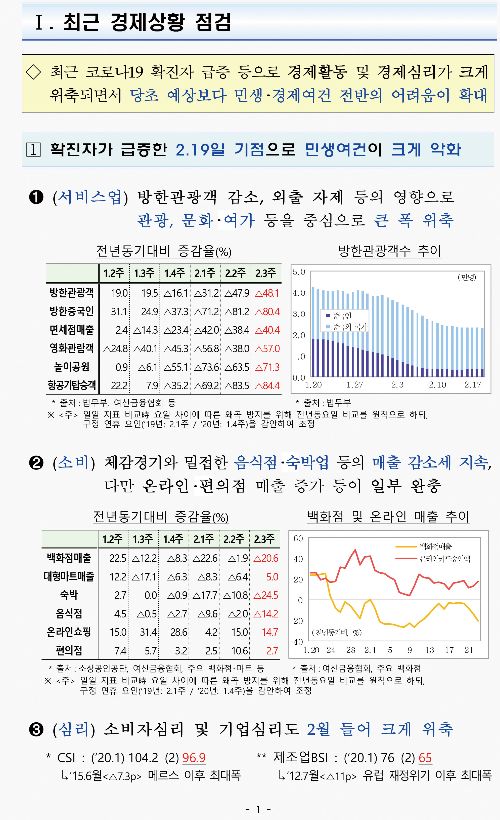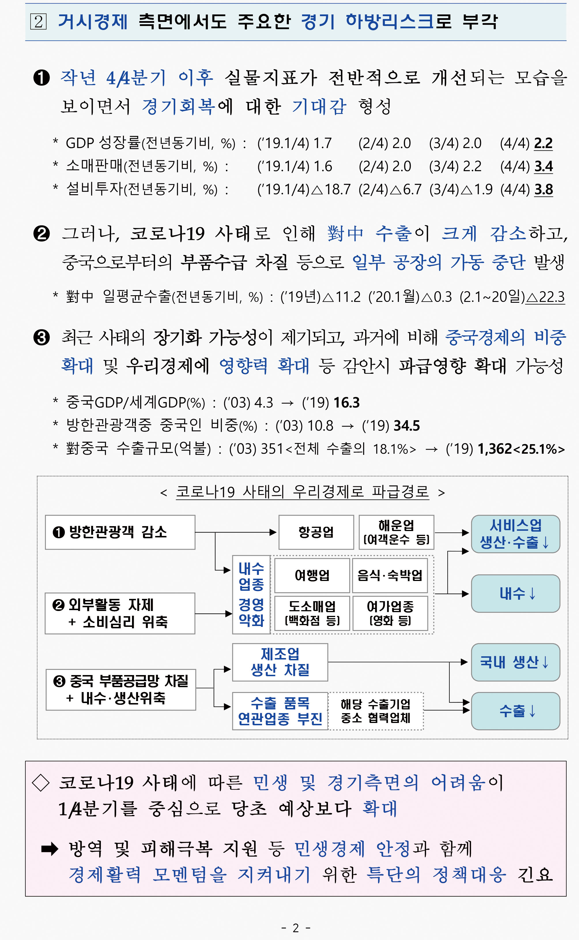 2020년 2월 한중 일평균수출 증감률 (2.1~20일 기준): -22.3%