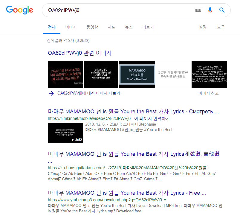 기존 영상은 이미 삭제됐지만 관련 영상으로 비슷한 것만 추려내줌