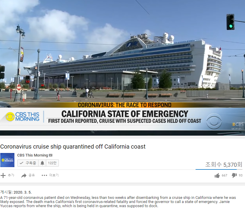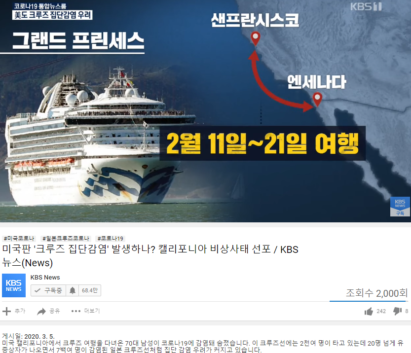 미국판 '크루즈 집단감염' 발생하나? 캘리포니아 비상사태 선포 / KBS뉴스