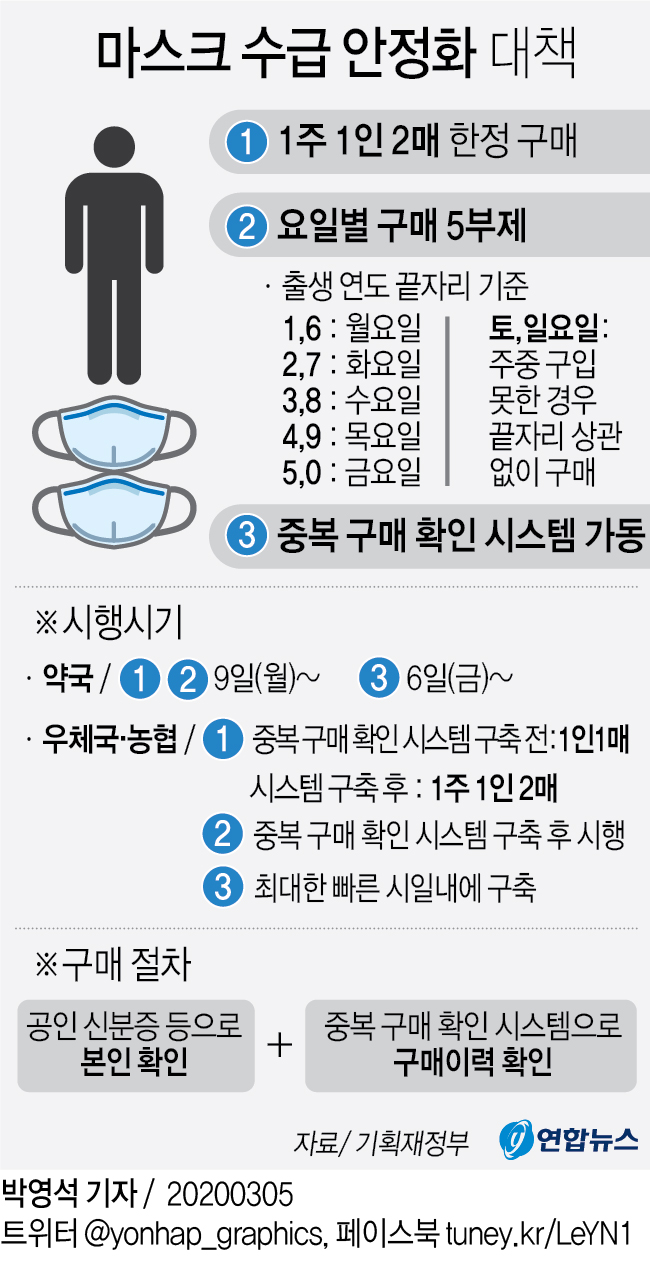 | [정보] 마스크 5부제 정리 (0) | 2020.03.07 |