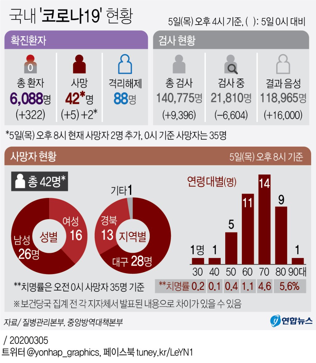 | [정보] 3월 6일 신종 코로나 바이러스 감염증-19 경과 (0) | 2020.03.07 |