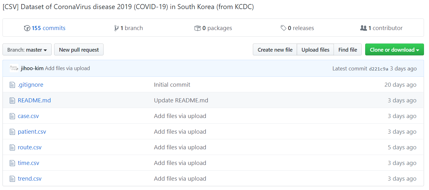 [CSV] Dataset of CoronaVirus disease 2019 (COVID-19) in South Korea (from KCDC) - jihoo-kim/Coronavirus-Dataset