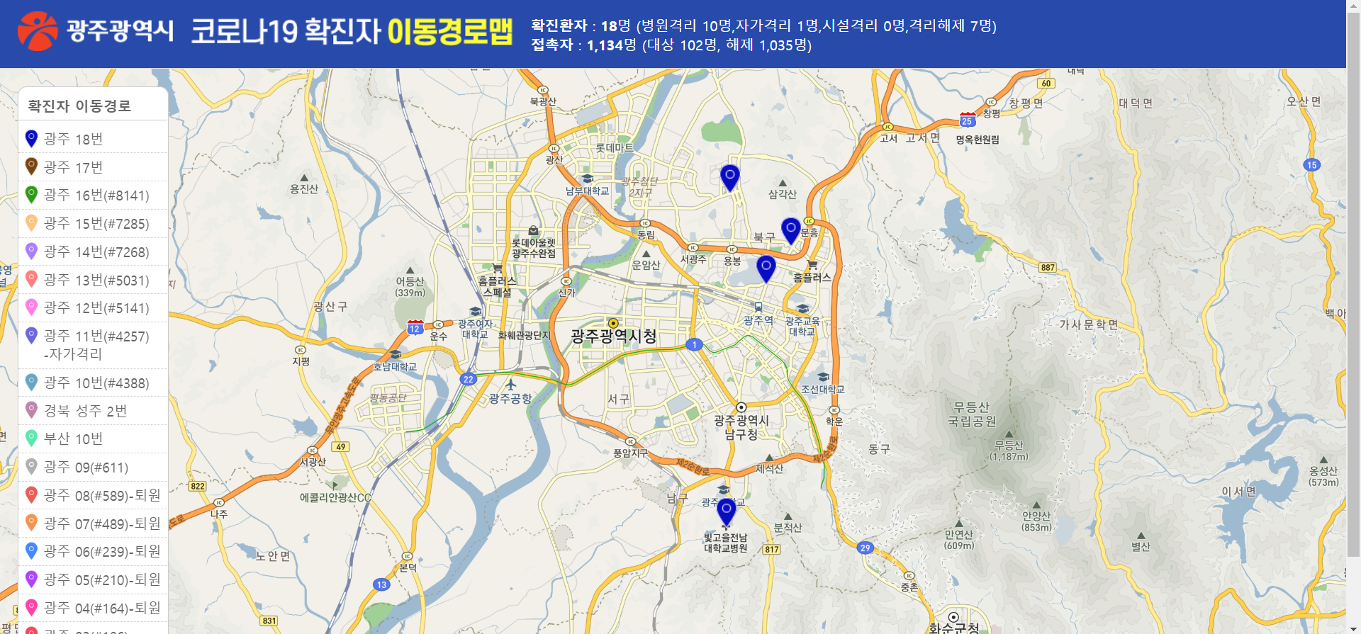 광주광역시 17번째 확진자 동선 공개…문흥동 바느실공원 방문