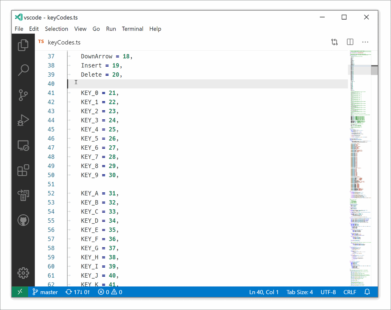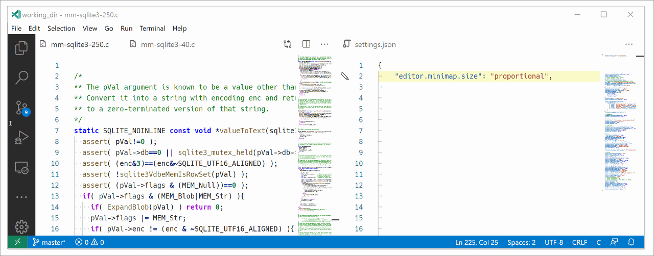 - When set to fit, the height of the minimap is limited to never be larger than the editor height. So if a file has many lines, they will be sampled and only a subset will be rendered in the minimap, such that there is no need for the minimap to scroll.