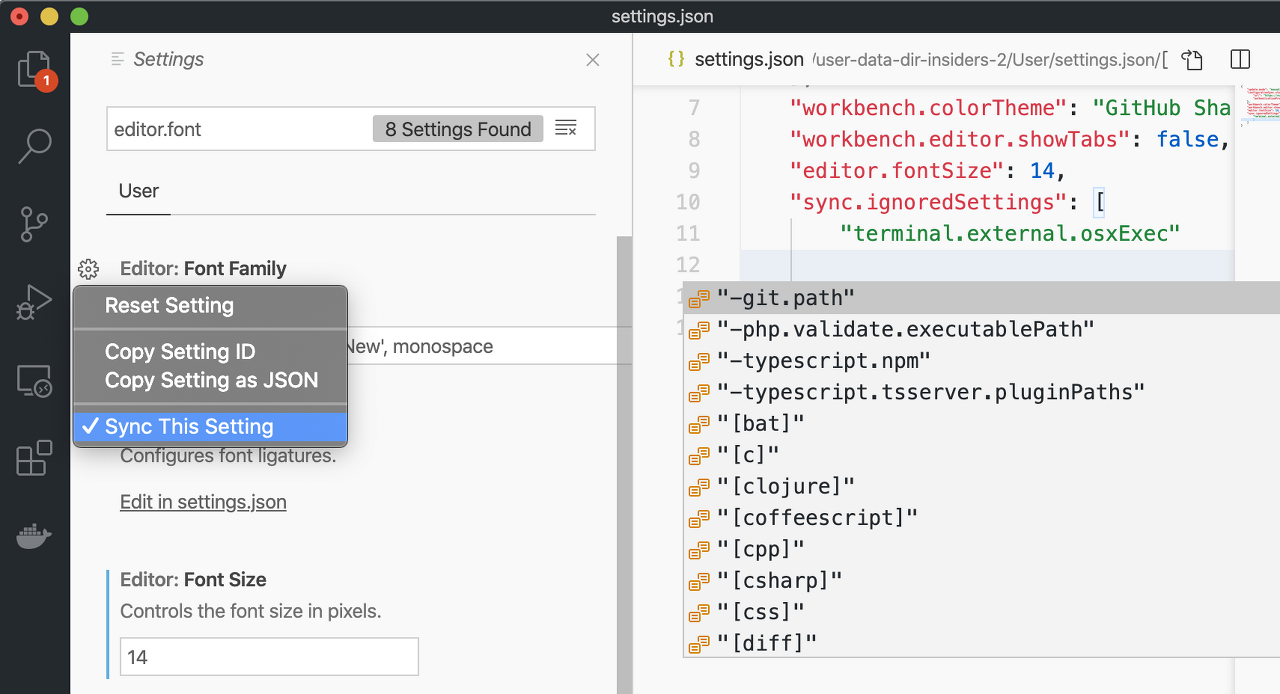 - Settings Sync preview - Settings Sync lets you share settings and keybindings across machines.