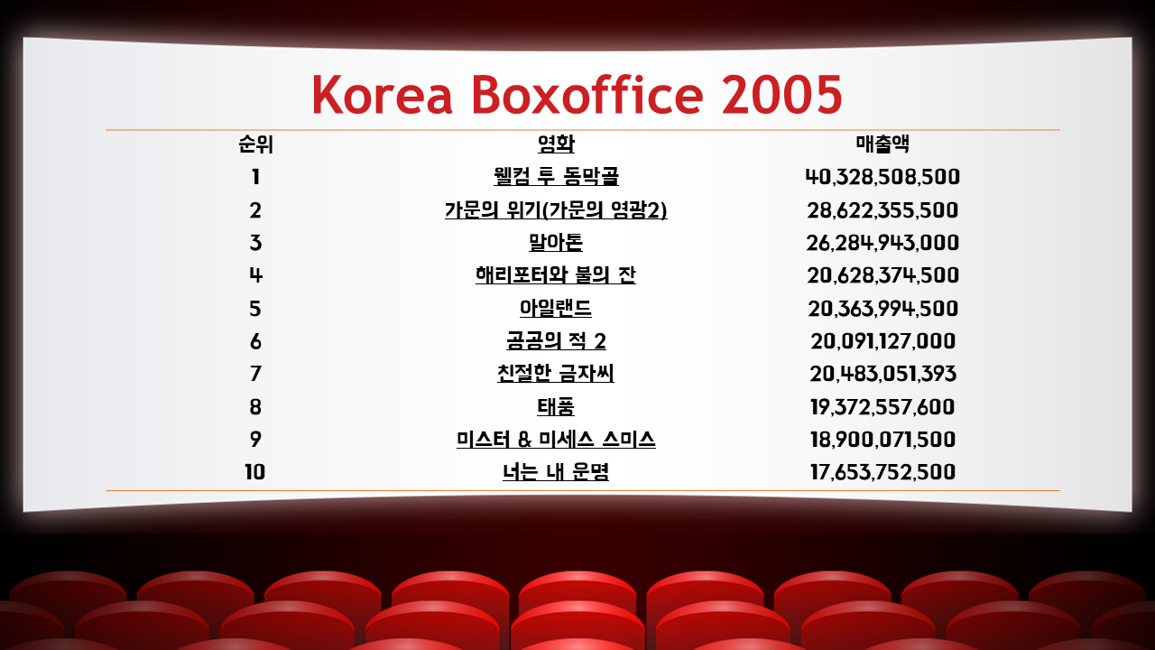| 역대 한국영화 탑 랭킹 2011년- 2012년 (0) | 2020.04.11 |