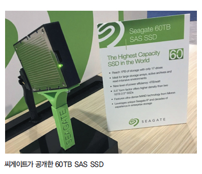 특히 삼성전자는 지난 2016년부터 세계 최초로 15.36TB 용 량의 SAS(Serial Attatched SCSI) SSD를 양산, 기업용 스토 리지 시장에 본격 공급하기 시작하면서 기술적 우위를 다졌다. 삼성전자는 512Gb(64GB) 용량의 4세대‘V낸드’기술을 기반 으로 32TB 용량의 SAS SSD를 올해 내로 출시할 계획이라고 밝히기도 했다.