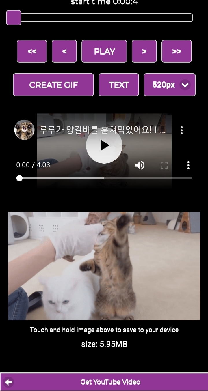 시작지점과 자를 영상길이를 설정하고 CREATE GIF를 누르면