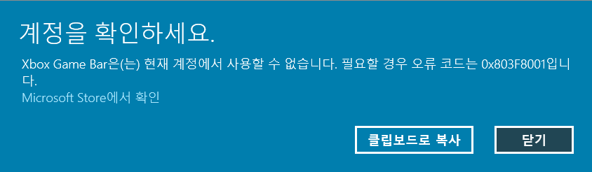 오늘 윈도우10에서 Xbox 앱에 에러코드가 나왔습니다.