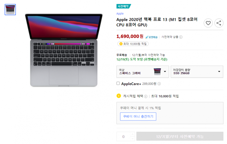 2020년 11월 애플은 맥북프로 13인치 기본형 모델만 애플 실리콘 칩인 M1으로 업데이트하여 출시하였습니다.M1 맥북프로 13인치는 애플이 자체개발한 실리콘 칩 덕분에 속도와 효율성이 크게 향상