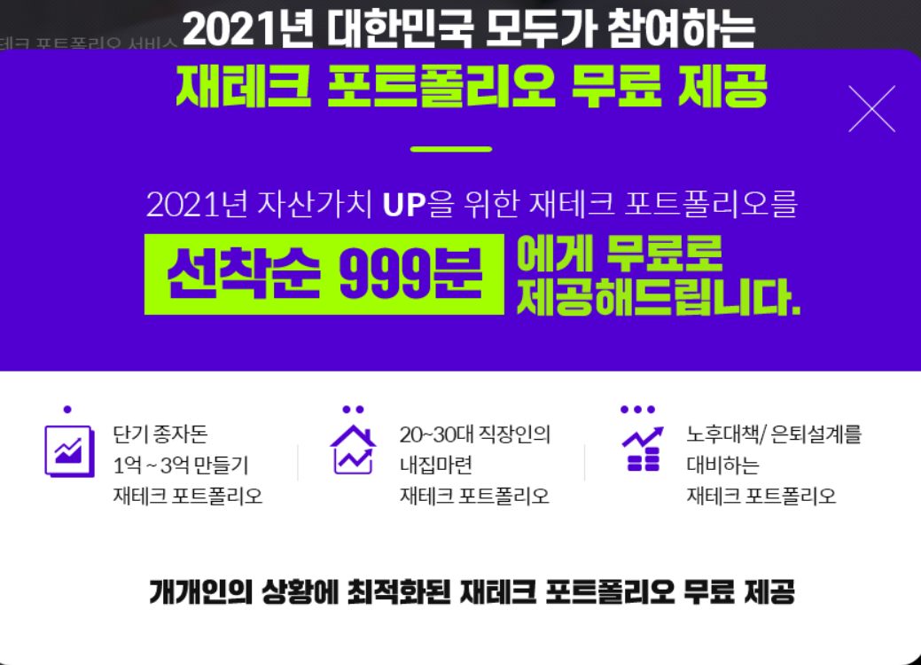 - 해당 캠페인은 재무설계/재테크 포트폴리오와 상담을 제공하는 플랫폼입니다.