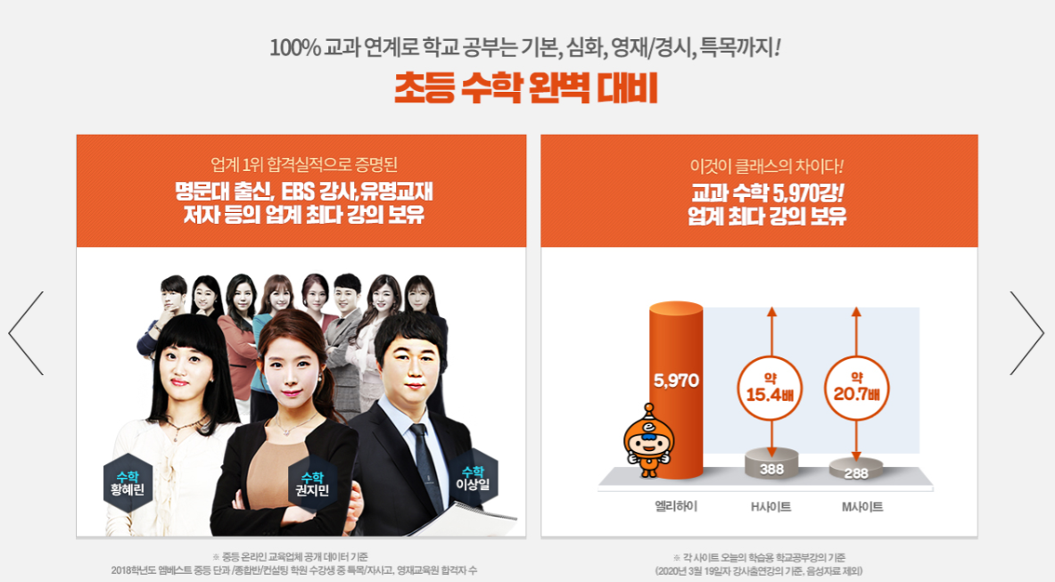 초등 엘리하이, 중등 엠베스트, 고등 메가스터디까지
