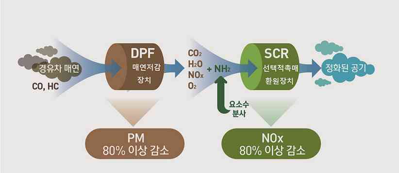 PMㆍNOx 동시저감장치 부착: 대형 버스, 화물차에 미세먼지(PM)와 질소산화물(NOx)을 동시에 줄이는 장치 부착 시