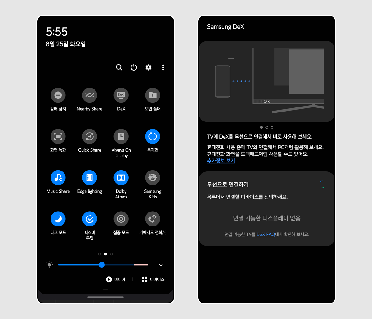 이 덱스 아이콘을 눌러주면 무선으로 디바이스 연결이 가능하다.
